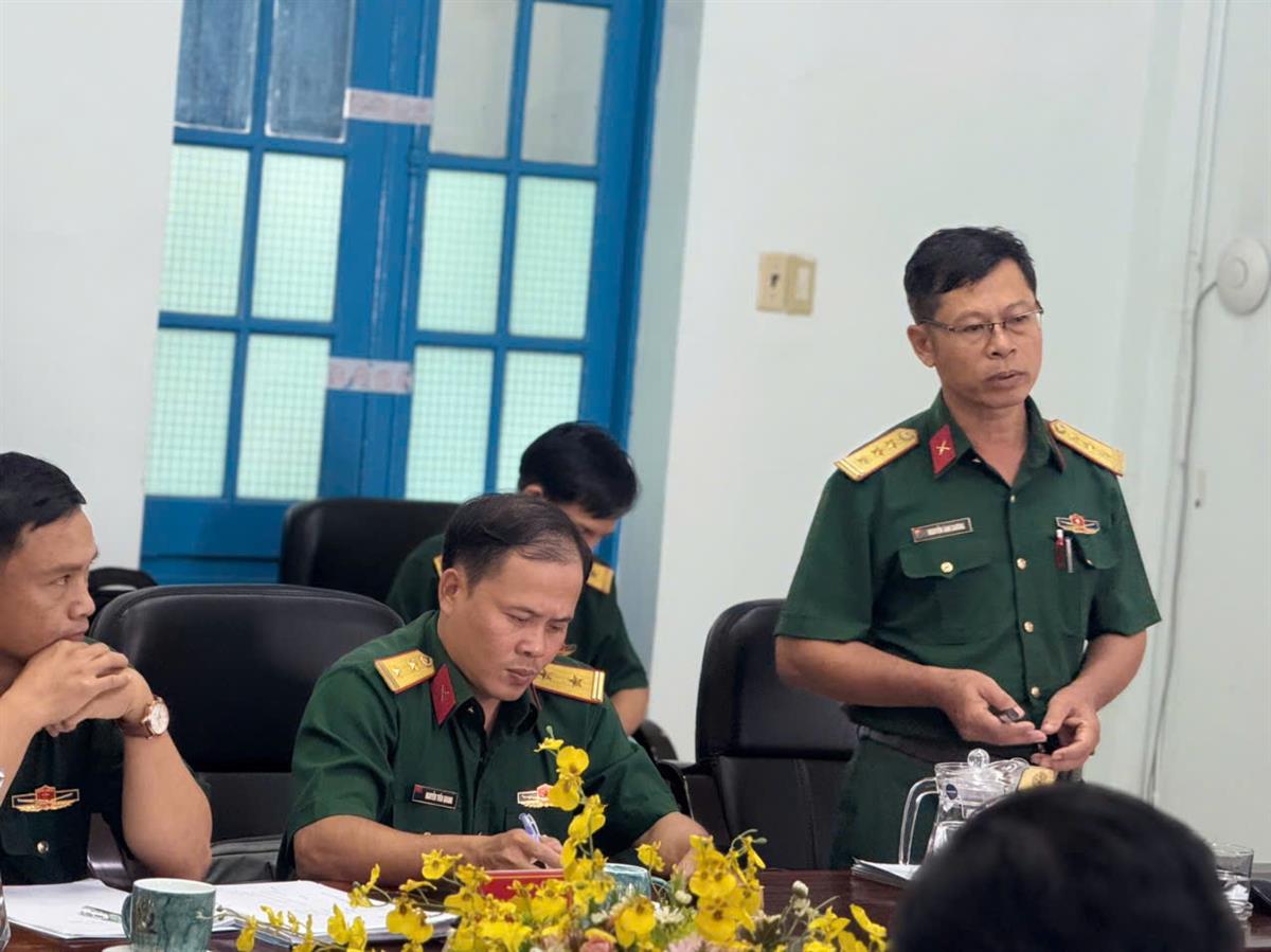 Tại buổi làm việc, đoàn công tác đã nghe báo cáo của Trung tâm GDQP và AN về tình hình thực hiện nhiệm vụ năm học 2024–2025. Theo đó, Trung tâm đã nghiêm túc triển khai chương trình môn học theo khung quy định của Bộ Giáo dục và Đào tạo, đồng thời phối hợp chặt chẽ với Bộ CHQS tỉnh và các đơn vị liên quan để tổ chức huấn luyện, quản lý sinh viên và đảm bảo cơ sở vật chất phục vụ giảng dạy.