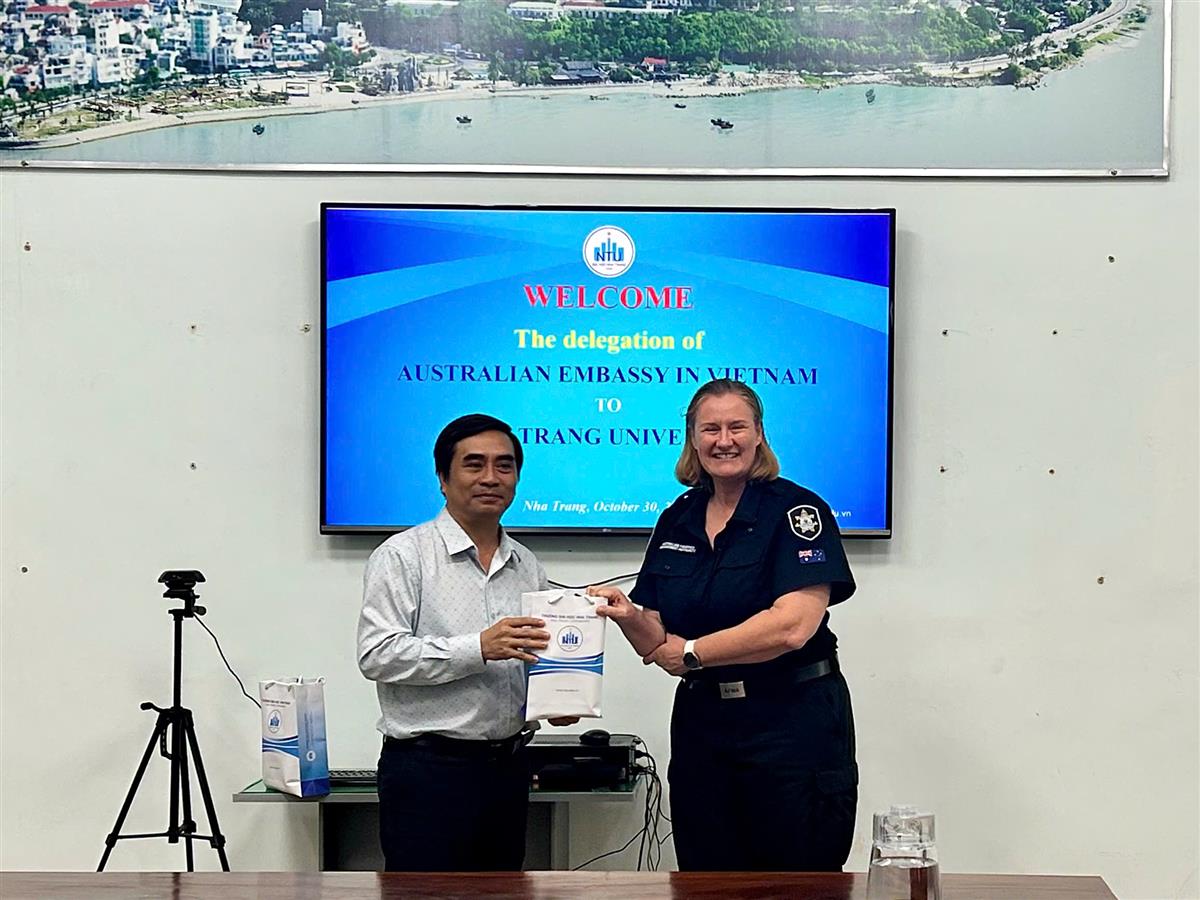 Chiều ngày 30/10/2025, trong khuôn khổ chuyến công tác tại Nha Trang để tham dự Lễ Bế giảng Khoá tập huấn về chống khai thác hải sản bất hợp pháp liên quan đến theo dõi, kiểm soát và giám sát (MCS) - Khoá 3 thuộc Dự án Khóa đào tạo chống khai thác hải sản bất hợp pháp, không khai báo và không theo quy định (IUU), phái đoàn của Đại sứ quán Úc tại Việt Nam đã đến thăm và làm việc với Trường Đại học Nha Trang.