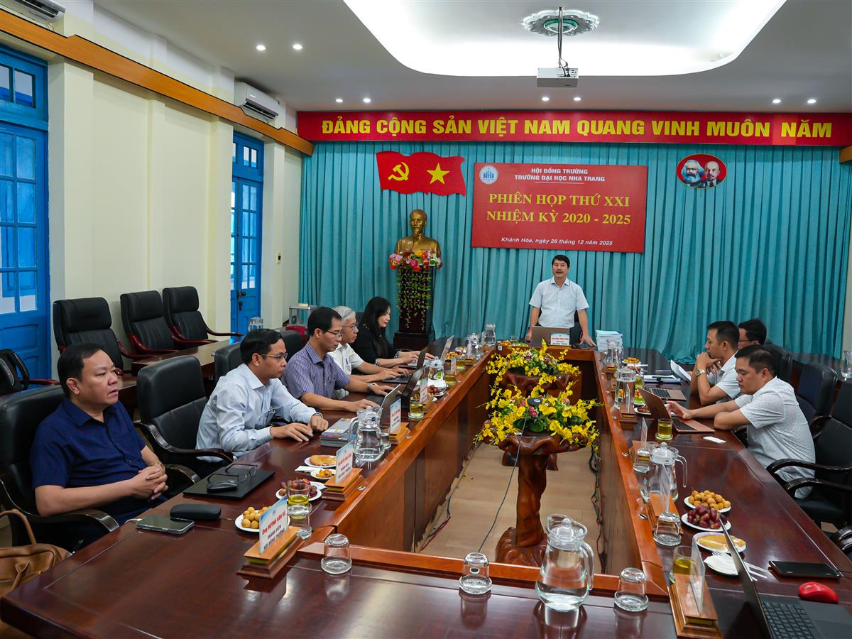 Ngày 26/12/2025, Hội đồng trường Trường Đại học Nha Trang đã tổ chức Phiên họp thứ XXI, nhiệm kỳ 2020–2025 theo hình thức trực tiếp kết hợp trực tuyến. Phiên họp được chủ trì bởi TS. Khổng Trung Thắng – Bí thư Đảng ủy, Chủ tịch Hội đồng trường, với sự tham dự của các thành viên Hội đồng trường.