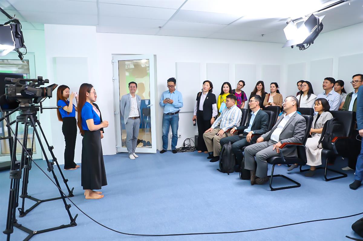 Các đại biểu được giới thiệu về quy trình và cách thức thực hiện ghi hình bài giảng số.