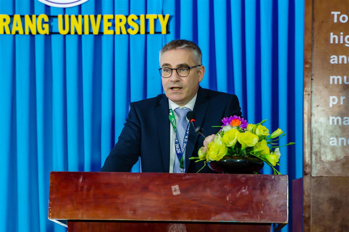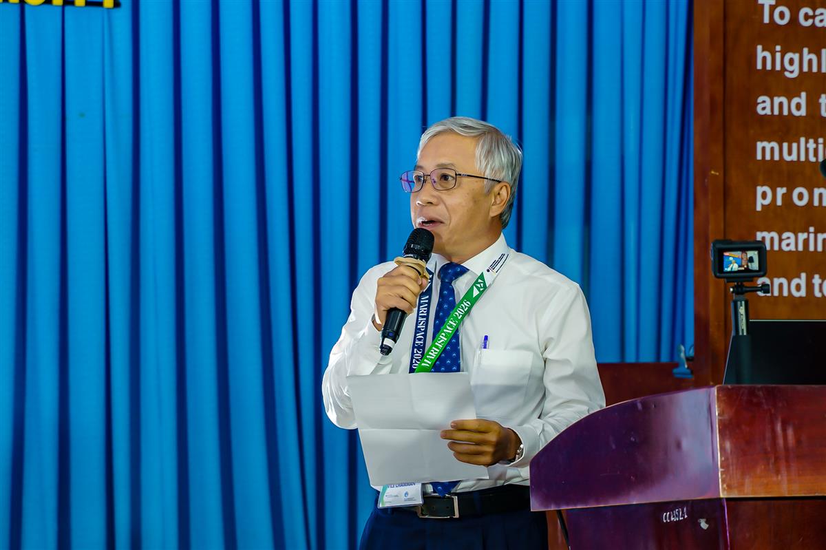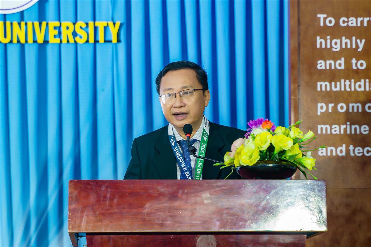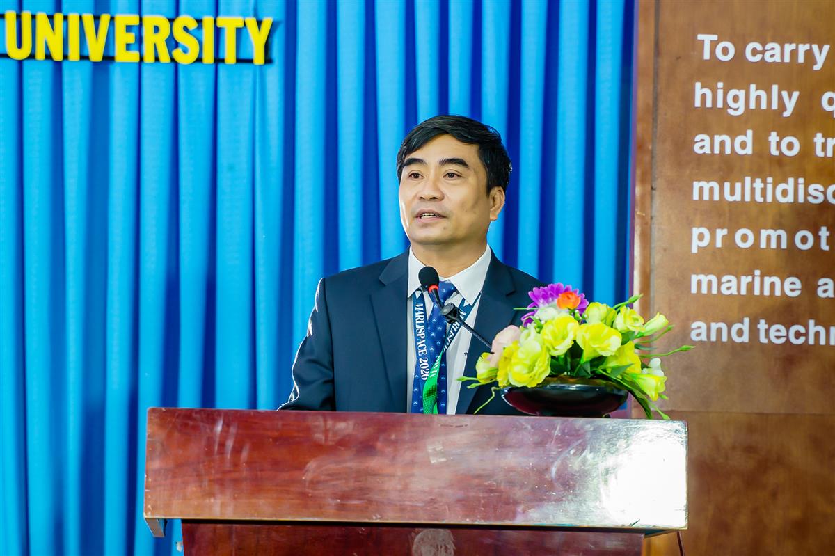 TS. Quách Hoài Nam – Hiệu trưởng Trường Đại học Nha Trang phát biểu khai mạc, nhấn mạnh vai trò hợp tác quốc tế trong phòng ngừa rác thải biển và thúc đẩy kinh tế tuần hoàn.