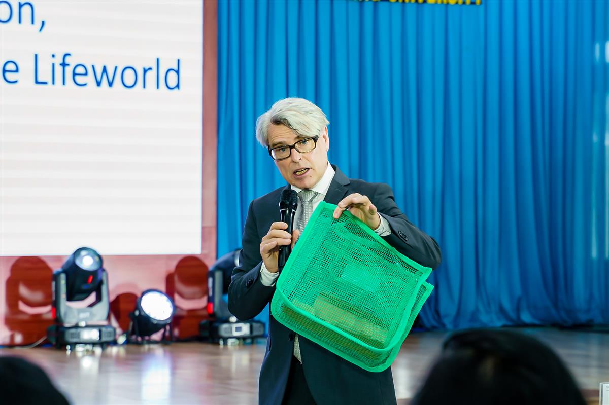 Một trong những điểm nhấn của hội thảo là sự tham gia trình bày của các diễn giả quốc tế uy tín đến từ Đại học Khoa học Ứng dụng Ostfalia, gồm GS.TS. Harald Gerhard Rau với chủ đề về truyền thông xã hội trong nền kinh tế tuần hoàn; GS.TS. Max Patrick Ehleben với nội dung về cơ hội và thách thức của tái chế nhựa; và GS.TS. Thomas Dieter Josef Potempa với bài trình bày về trách nhiệm của nhà sản xuất. Bên cạnh đó, GS.TS. Phạm Quốc Hùng giới thiệu và quảng bá các kết quả nổi bật của dự án REVFIN.