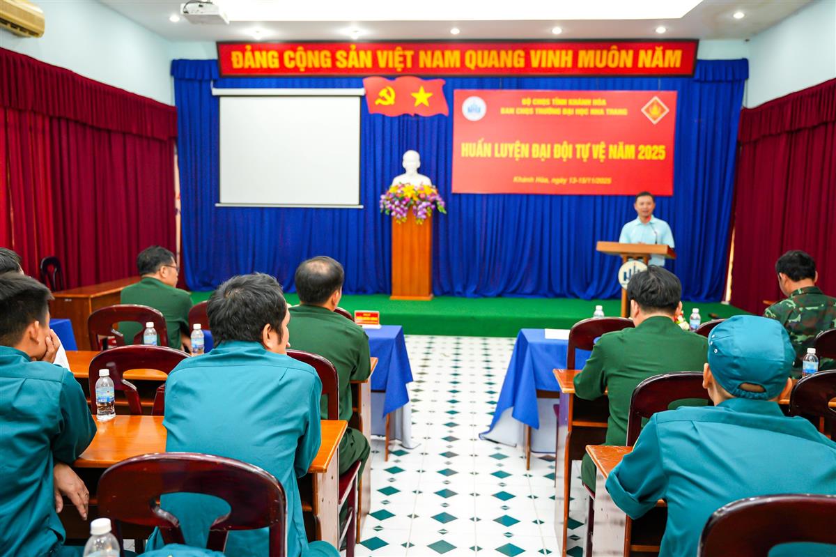 Ngày 15/11/2025, Trường Đại học Nha Trang tổ chức Bế mạc đợt huấn luyện lực lượng tự vệ năm 2025 sau 3 ngày huấn luyện tập trung từ 13–15/11/2025. Đợt huấn luyện diễn ra nghiêm túc, đúng kế hoạch, bảo đảm an toàn, hoàn thành toàn bộ nội dung theo quy định.