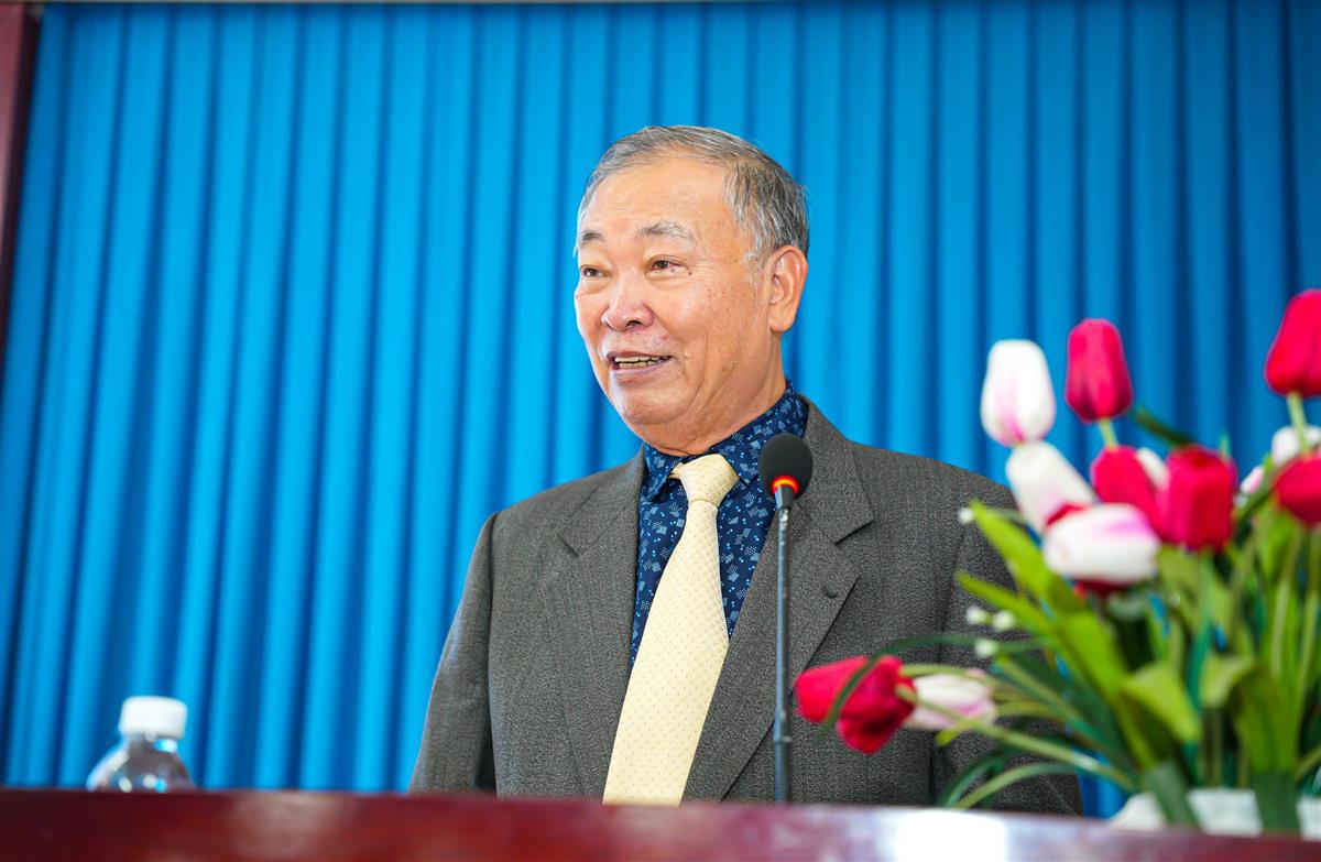 TS. Nguyễn Hữu Trọng – Chủ tịch Hội Cựu Giáo chức Trường Đại học Nha Trang phát biểu tại buổi gặp mặt, chia sẻ cảm xúc và gửi lời tri ân đến Nhà trường.