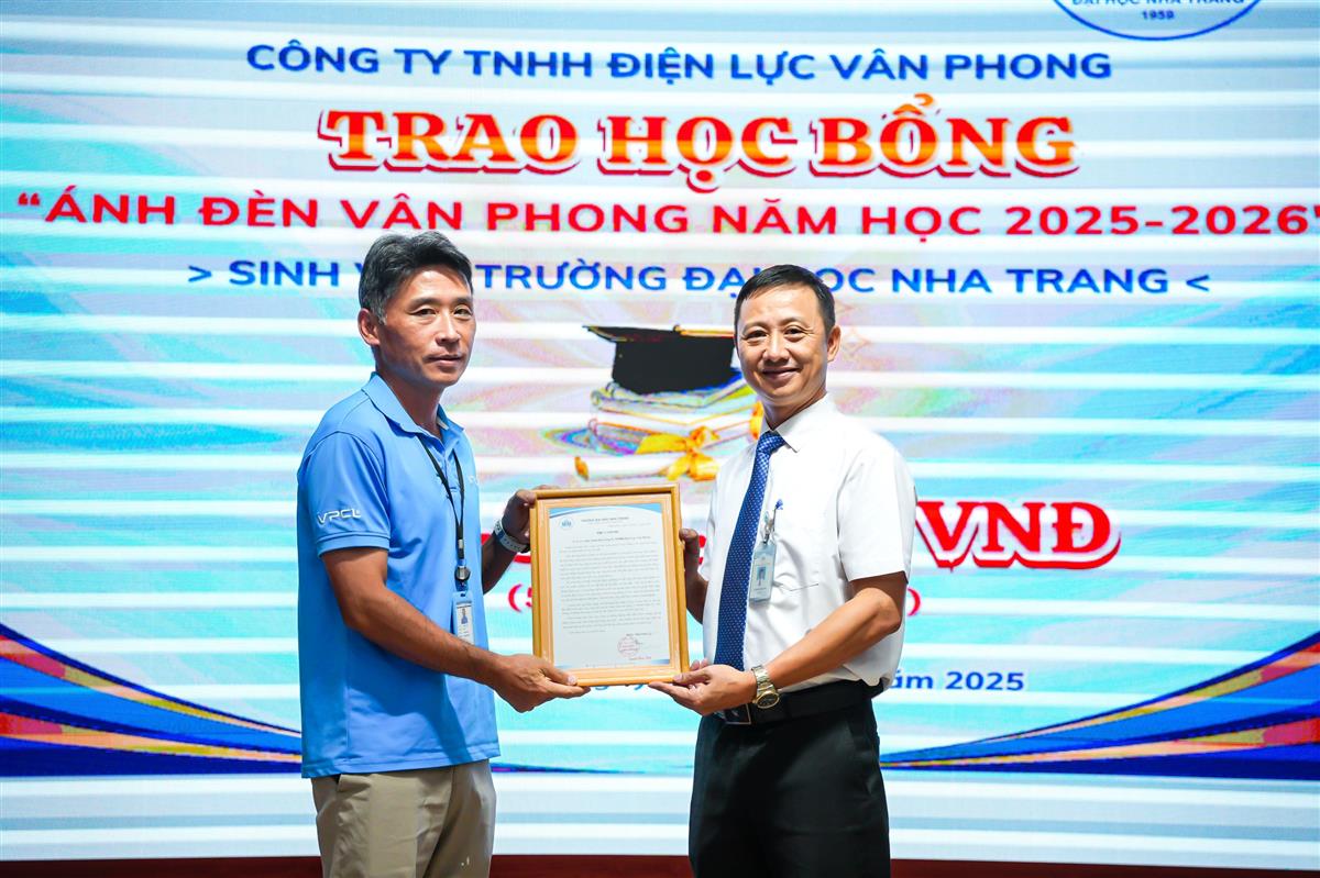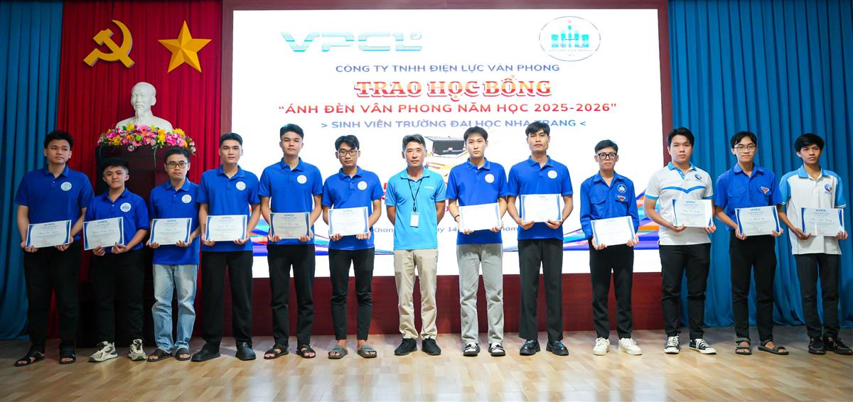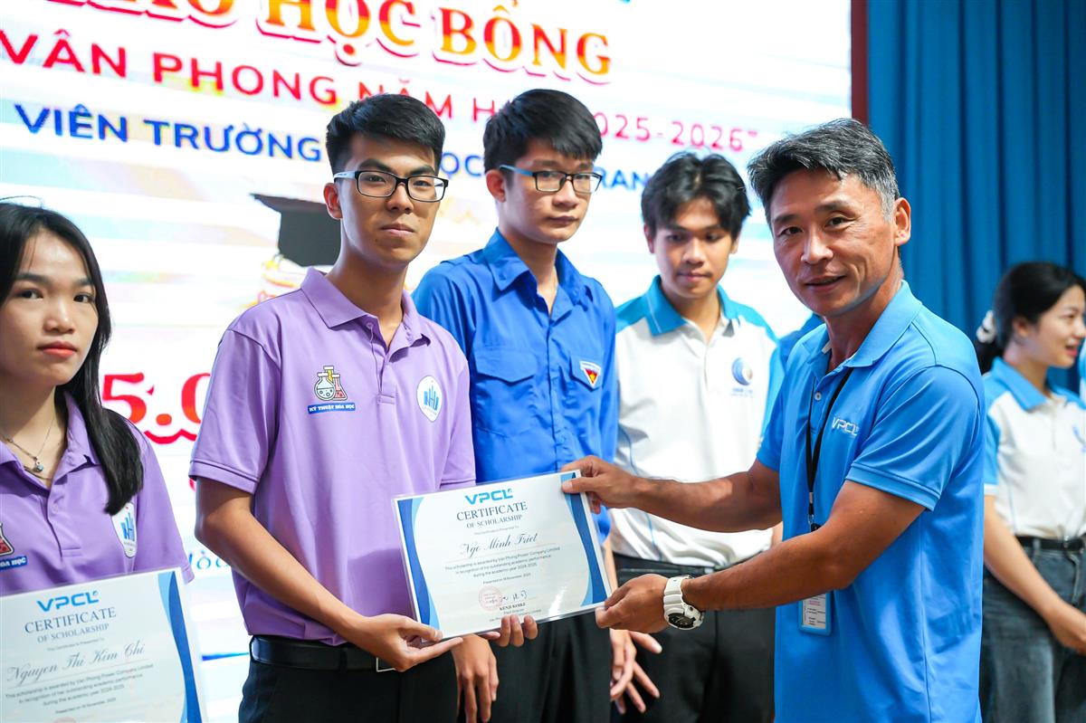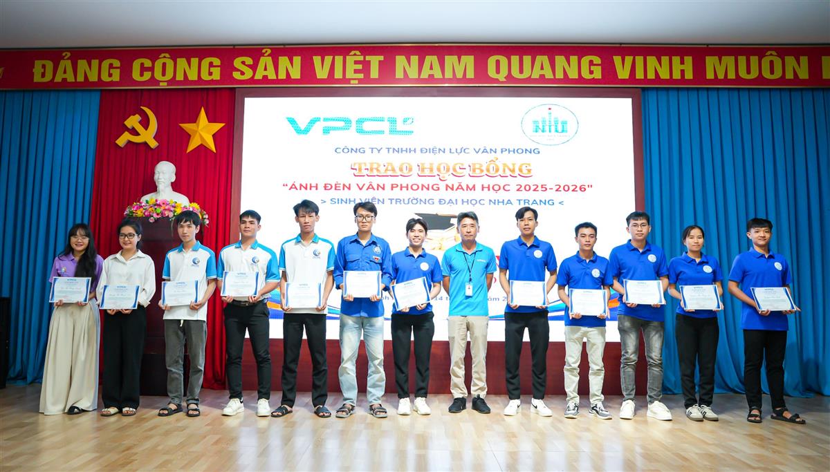 Năm nay, Công ty TNHH Điện lực Vân Phong trao tổng cộng 33 suất học bổng với giá trị 165 triệu đồng, gồm hai hạng mục: Học bổng Khuyến tài dành cho sinh viên có điểm trung bình tích lũy từ 8.0 trở lên và Học bổng Khuyến học dành cho những sinh viên vượt khó có kết quả học tập tốt. Sinh viên thuộc ba khoa: Công nghệ thực phẩm, Cơ khí và Điện – Điện tử được nhận học bổng, trong đó nhiều em đạt điểm số ấn tượng như 9.4, 8.9, 8.6…