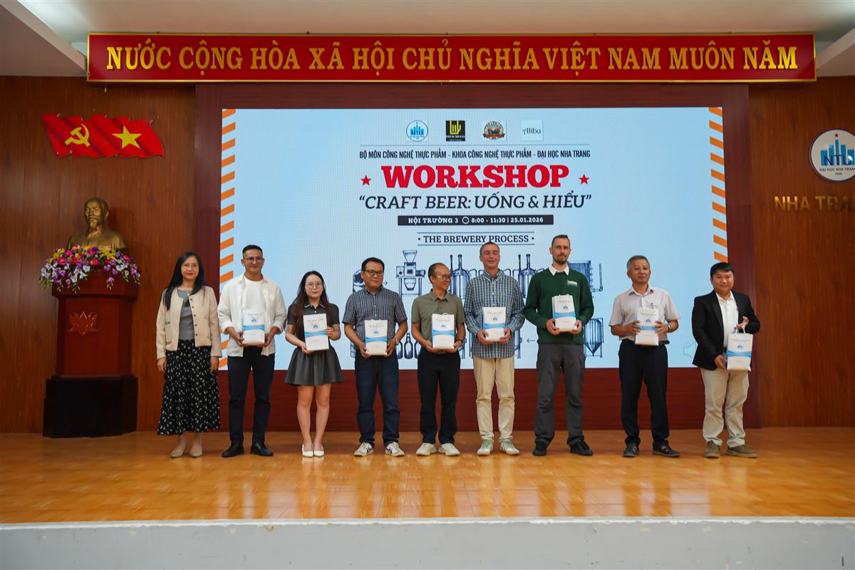 Ngày 25/01/2026, tại Hội trường 3, Trường Đại học Nha Trang tổ chức workshop chuyên đề “Uống và Hiểu”, nhằm trang bị kiến thức nền tảng về bia thủ công (craft beer), nâng cao hiểu biết chuyên môn và định hướng nghề nghiệp cho sinh viên, đặc biệt là sinh viên Khoa Công nghệ Thực phẩm và các lĩnh vực liên quan.
